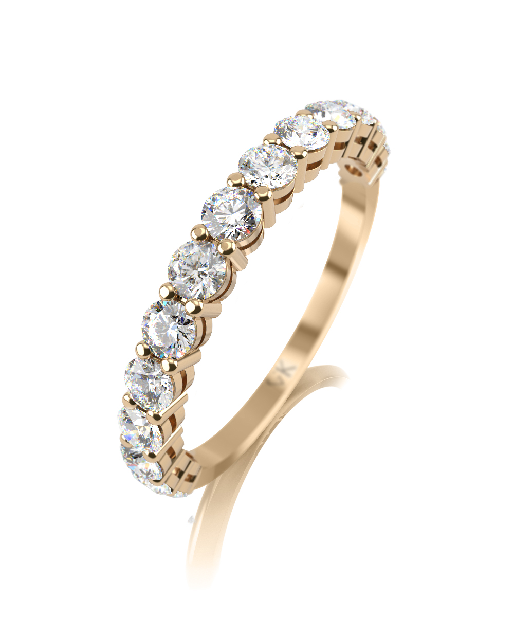 Кольцо из желтого золота 585 пробы, украшенное дорожкой из бриллиантов.