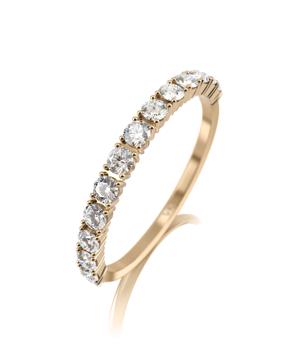 Кольцо из желтого золота 585 пробы, украшенное дорожкой из выращенных бриллиантов.
