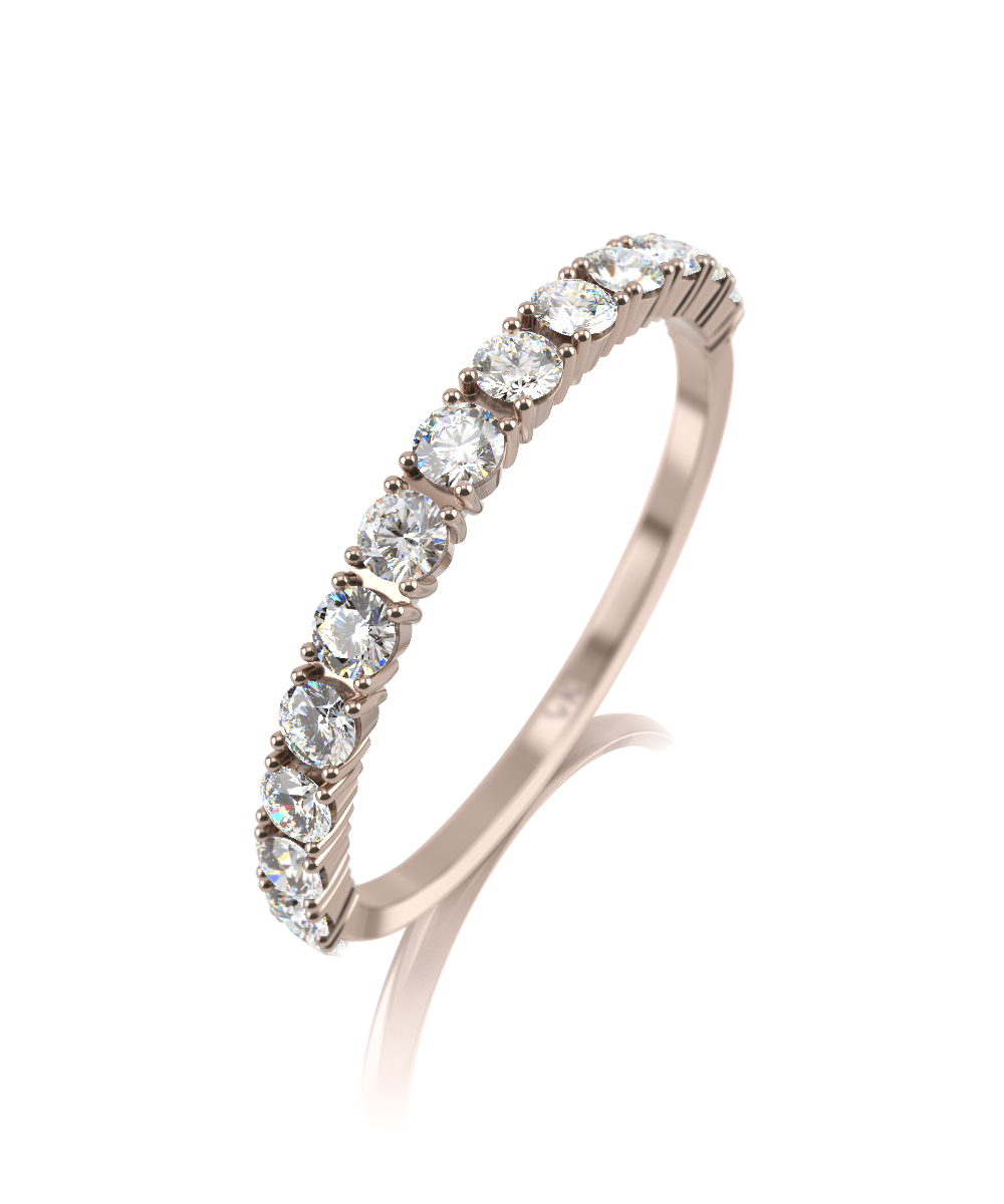 Кольцо из красного золота 585 пробы, украшенное дорожкой из выращенных бриллиантов.
