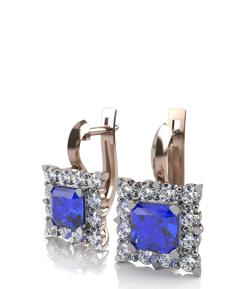 Серьги из красного золота с сапфирами и выращенными бриллиантами