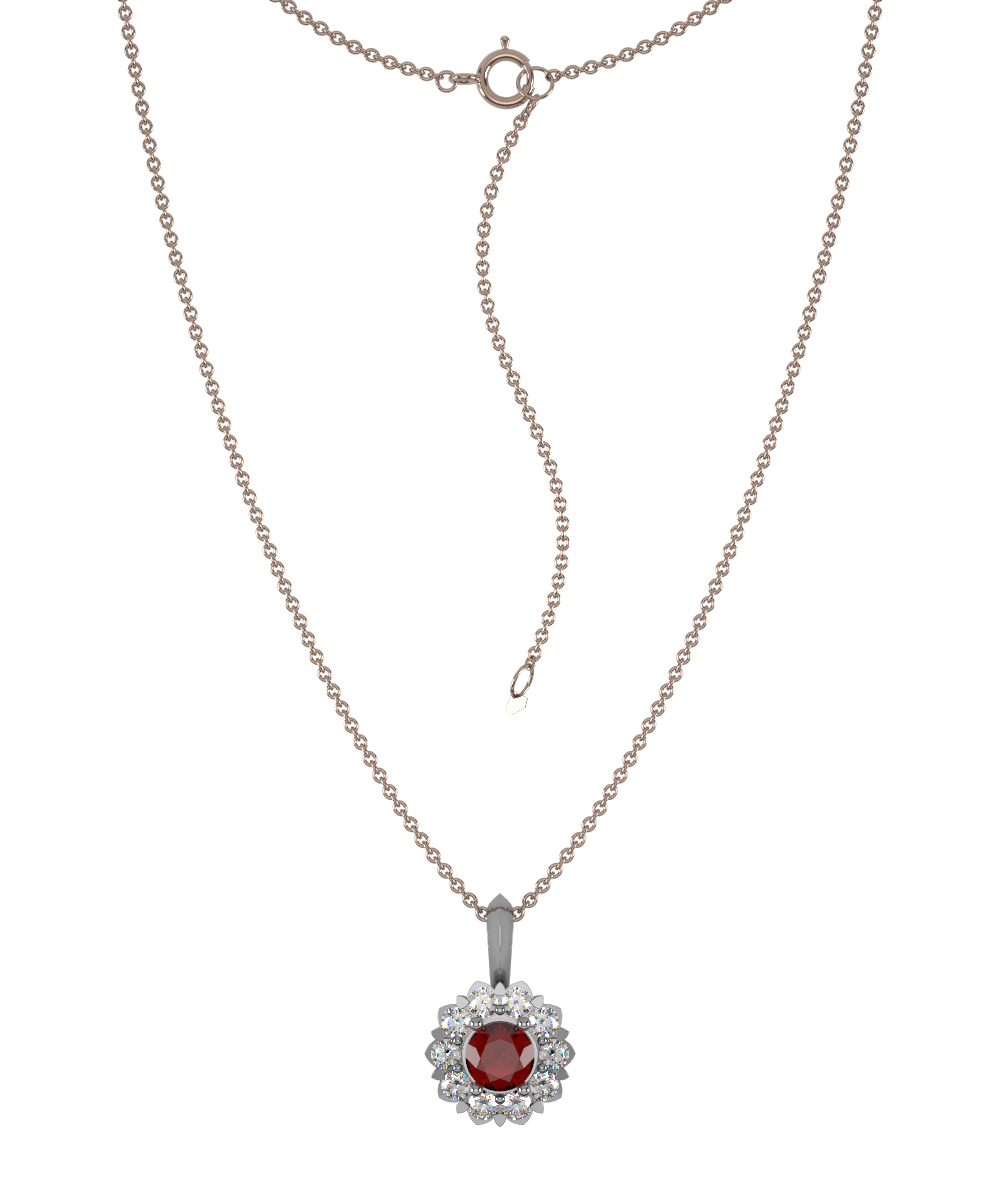 Изысканное колье в сочетании красного и белого золота с рубином и выращенными бриллиантами.