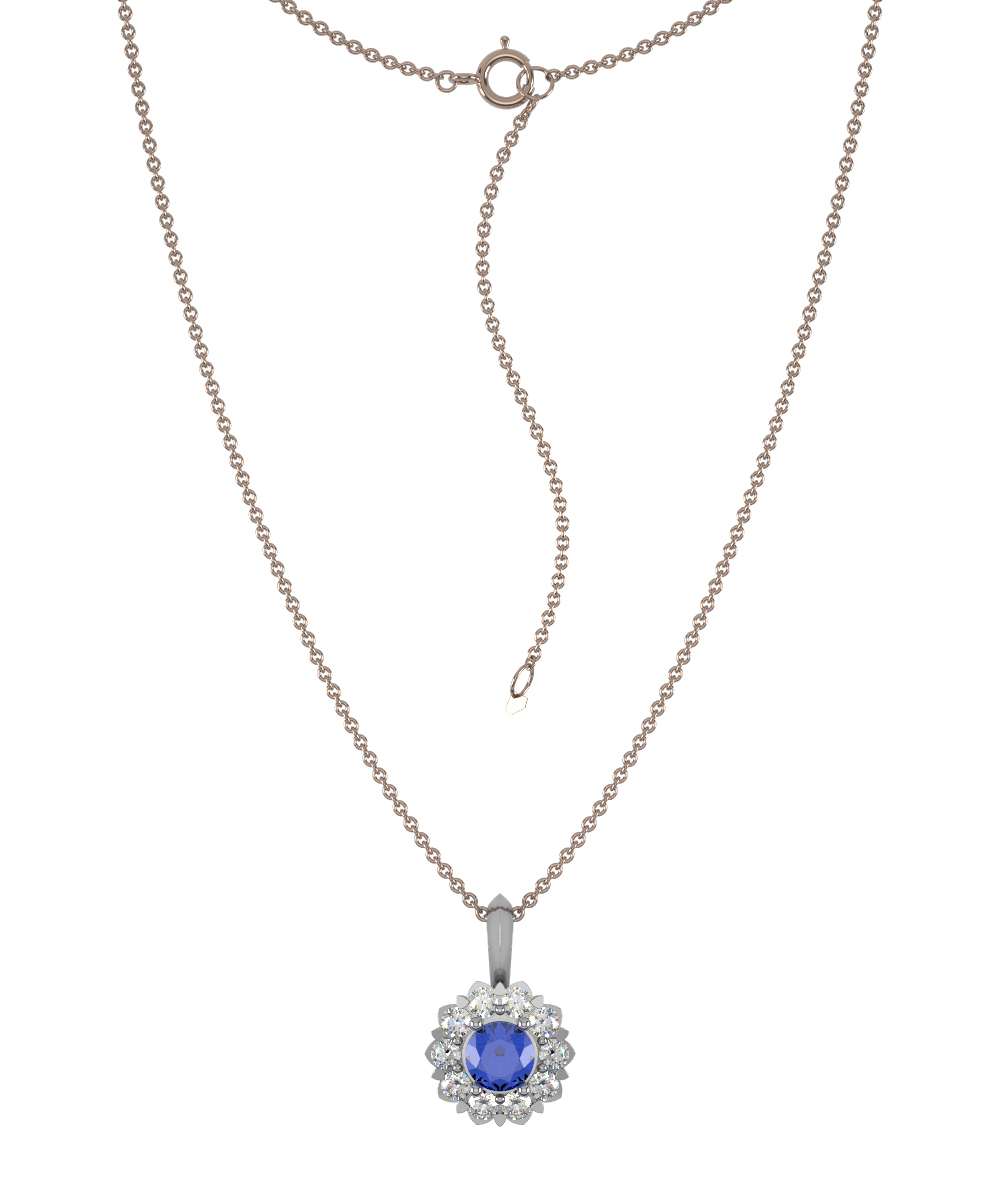Колье из комбинированного золота с сапфиром и выращенными бриллиантами