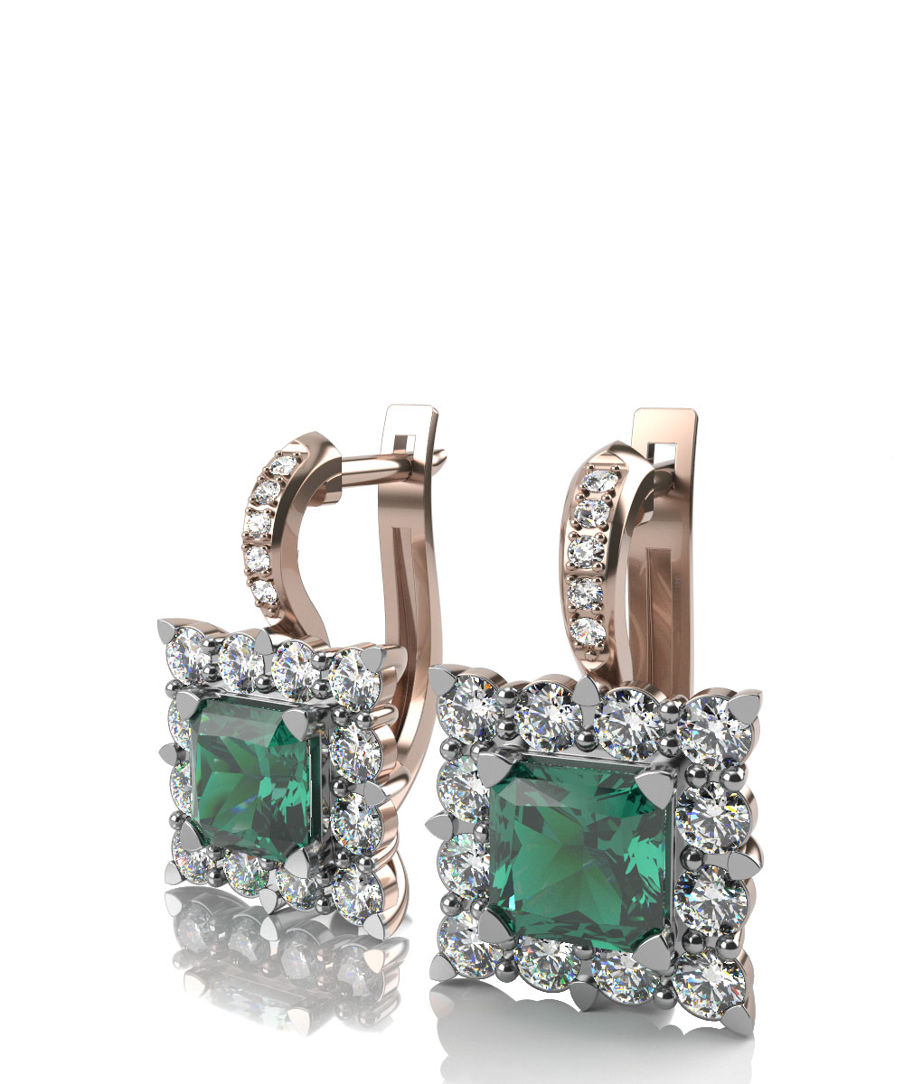 Серьги из красного золота с изумрудами и выращенными бриллиантами